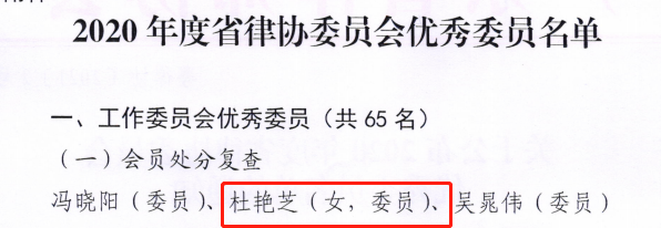 我所杜艳芝律师荣获省律协颁发“2020年度优秀委员”